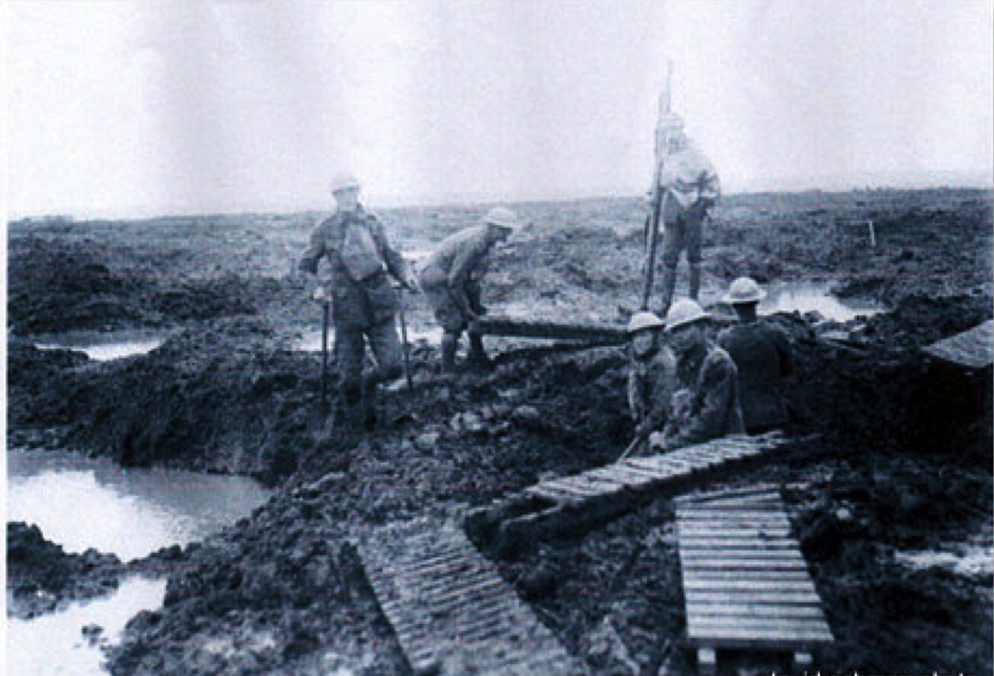 “The RND (Royal Naval Division) moved up into the line for the attack scheduled for the 26th October, Its portion of the line ran from Wallenmolen Cemetery to a destroyed stream called the Lekkerbotterbeek. Jerrold the RND historian says that the “Division was never confronted with a task which, on the lines laid down for them, was more impossible of fulfilment”. In this relatively low lying area the conditions were truly appalling: there were almost no trenches. The front line positions of both sides consisted of isolated posts in a sea of mud.... Speed of progress during an attack was a matter of pot luck on the condition of the terrain………..the gains had been minute for the cost....” Extracts from the Royal Marine Records of Actions during the Great War.